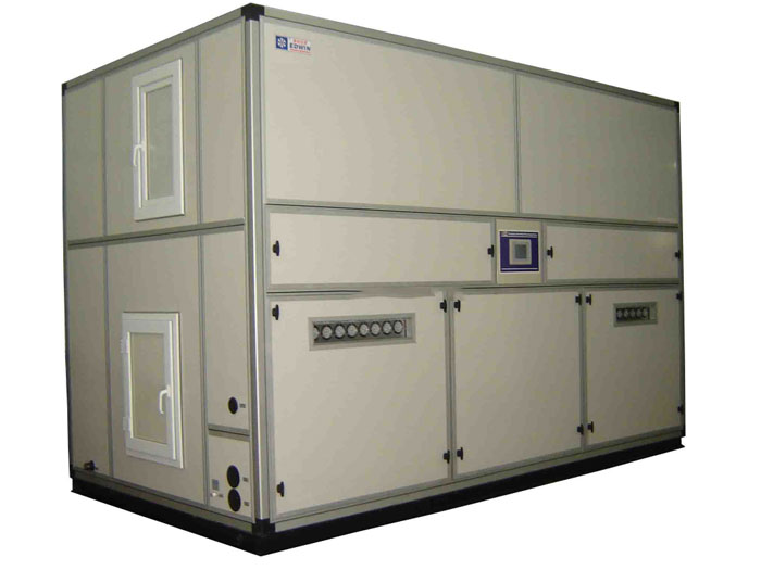 净化用恒温恒湿空调机组可分为冷冻水型和自带冷源型。冷冻水型机组的冷源由另配的冷水机组提供5-10℃的冷冻水;自带冷源型机组的冷源