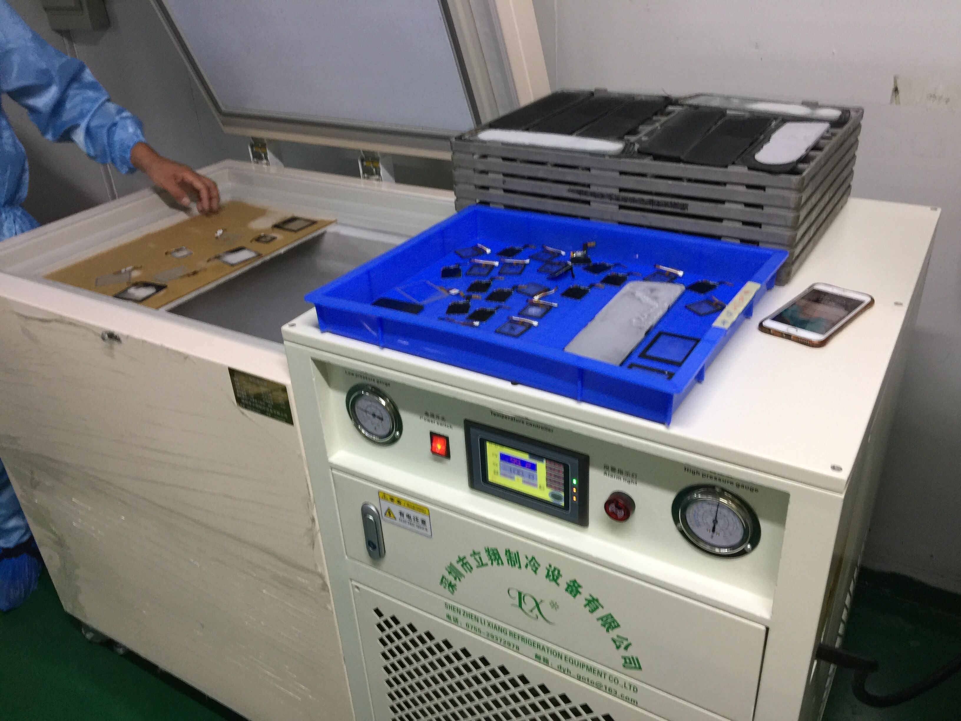 LXBX series -150°C ultra low temperature LCD frozen separator freezer can cool down the touch screen by means of cold and heat exchanging through cold air in the chamber, which make the OCA glue and optical glue loses viscosity at low temperature and separate out the LCD from the LCD screen module (that is the LCD screen is to be separated from the TP or cover plate), or peel off TP or cover plate from the LCD screen module, recycle or renovate LCD or LCD panel.